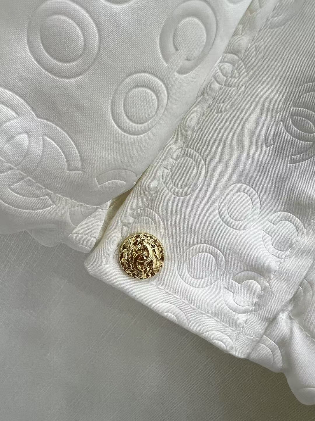 25 new sun protection jacket Satin dark pattern coco series double C letter logo hooded off-shoulder jacket The drawstring at the hem creates a visual layering. Wear it to create a neat and handsome look. It has a retro and fashionable feel. The details are in place. The texture is wide and comfortable. The classic style is not picky and makes the upper body look very thin! A must-have for white, rich and beautiful women