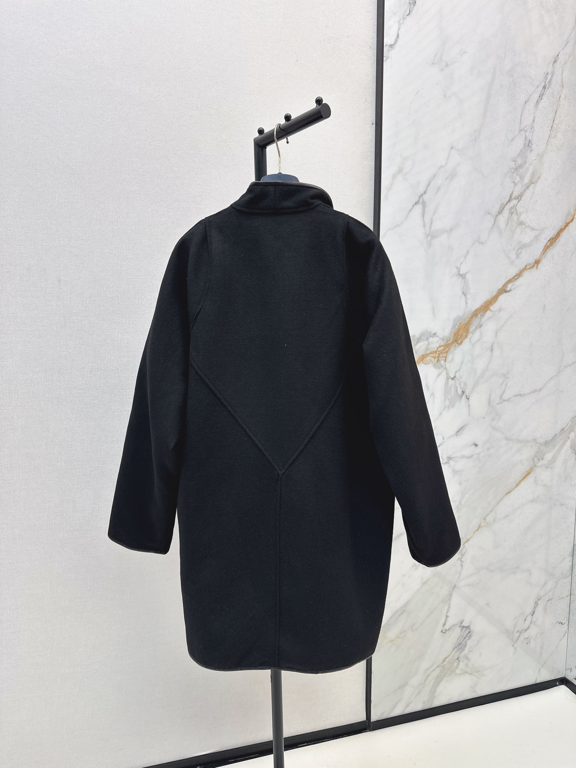 Leather edging details are handmade, with a luxurious and understated stand up collar design featuring vintage jacquard patterns. The long silhouette is paired with buckle embellishments, making the collar fashionable and elegant. It can be paired with various styles, including high-end, simple, lazy, and not loose. The wool blend fabric is comfortable and stylish, making it easy to interpret a variety of fashionable styles. It is classic and timeless.