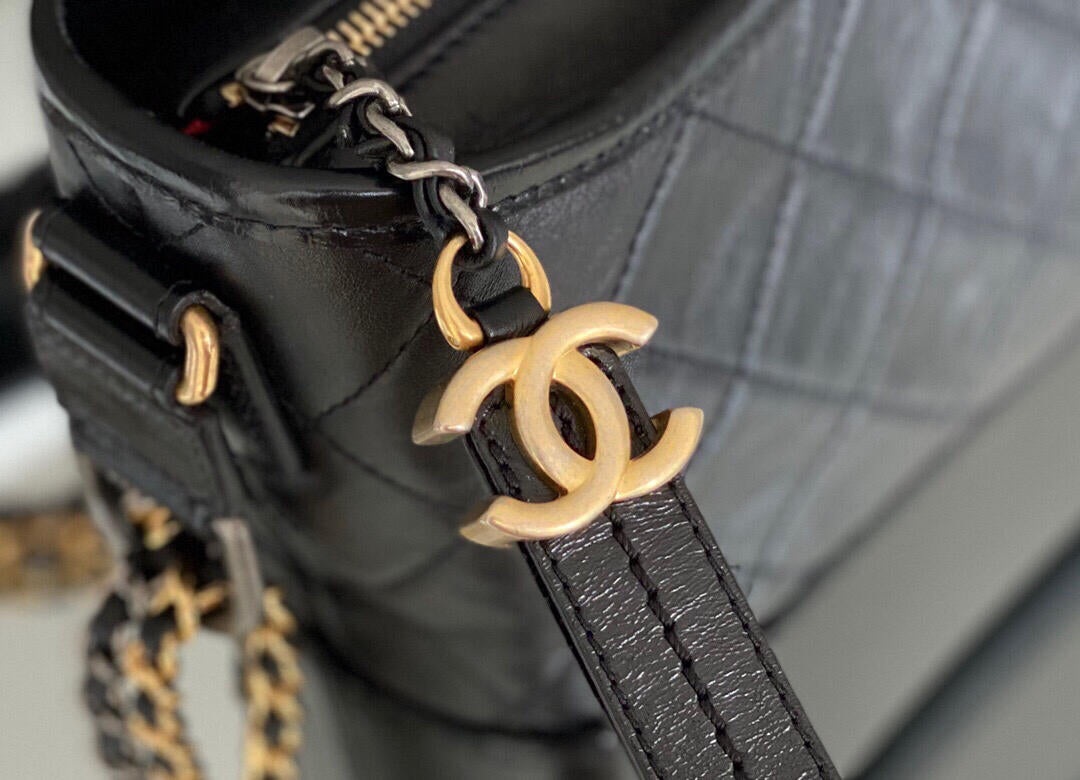 Aged Calfskin Quilted small Gabrielle Hobo Black