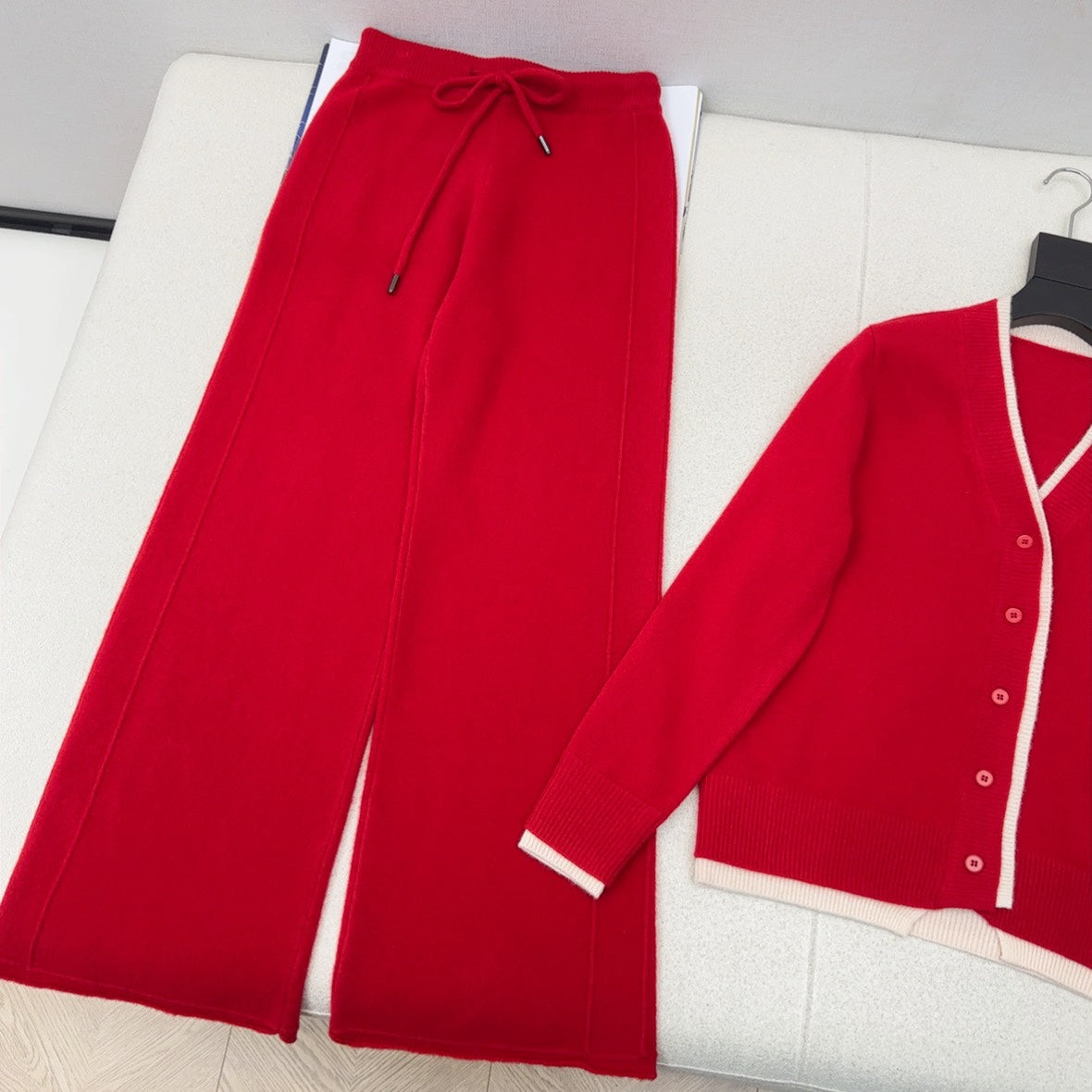The latest lazy-style wool suit for autumn and winter 🩶Fake two-piece V-neck knitted cardigan + straight pants 100% thickened fine wool yarn fabric Simple and elegant lazy style Durable and durable Warmth and appearance are both online~~The most practical and versatile boutique Autumn and winter base layering daily advanced! ! Super large elasticity does not pick body shape one set for sale