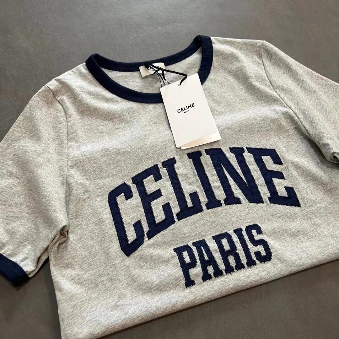 Contrast color appliqué embroidered short-sleeved T-shirt
