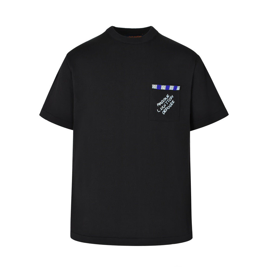 chest pocket beaded embroidered short sleeves
