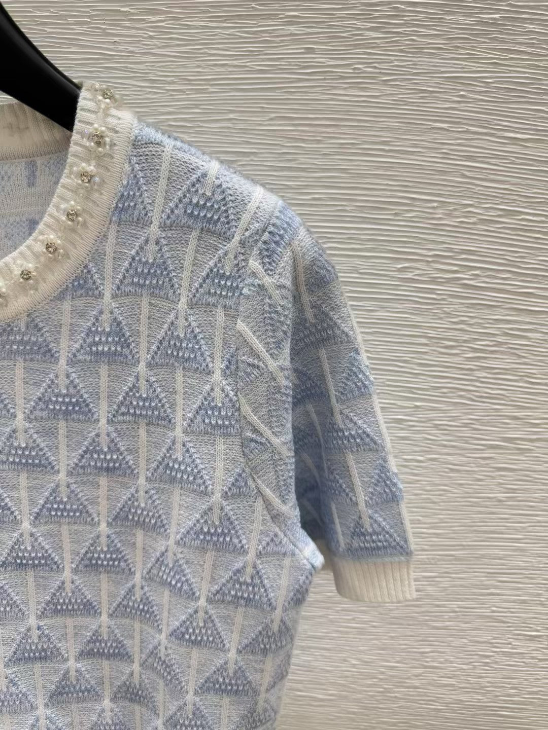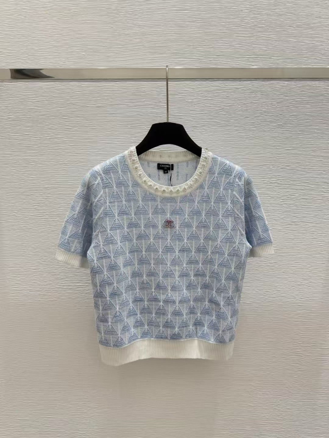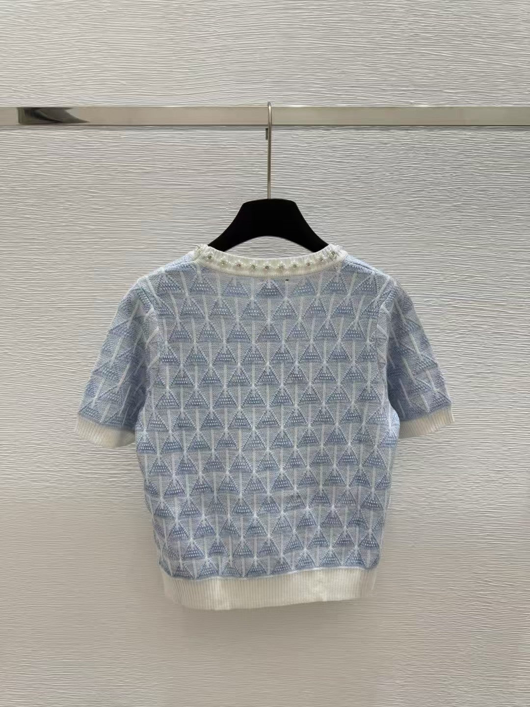 Crew neck beaded knit short sleeves