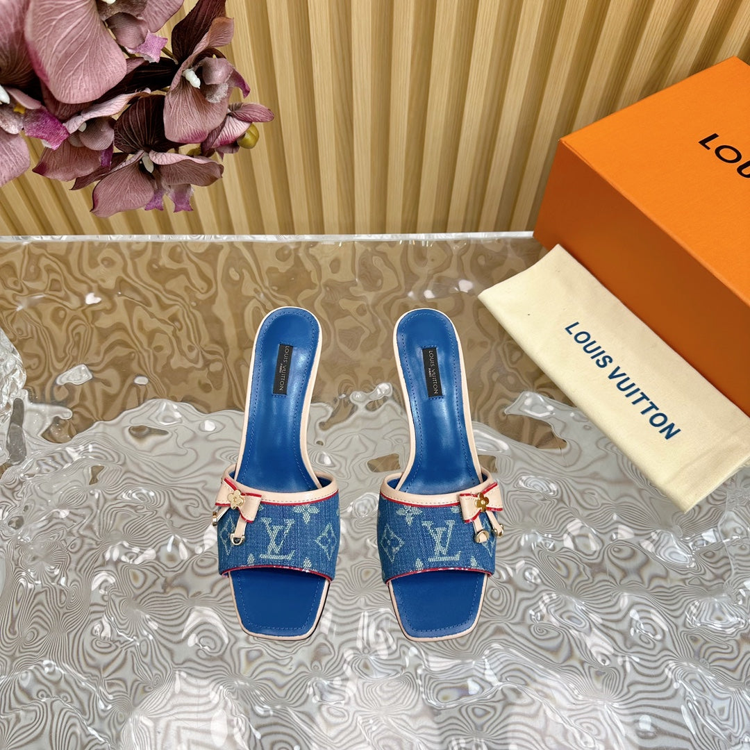 Medieval Vintage retro literature and art velvet bow🎀cat heel sandals