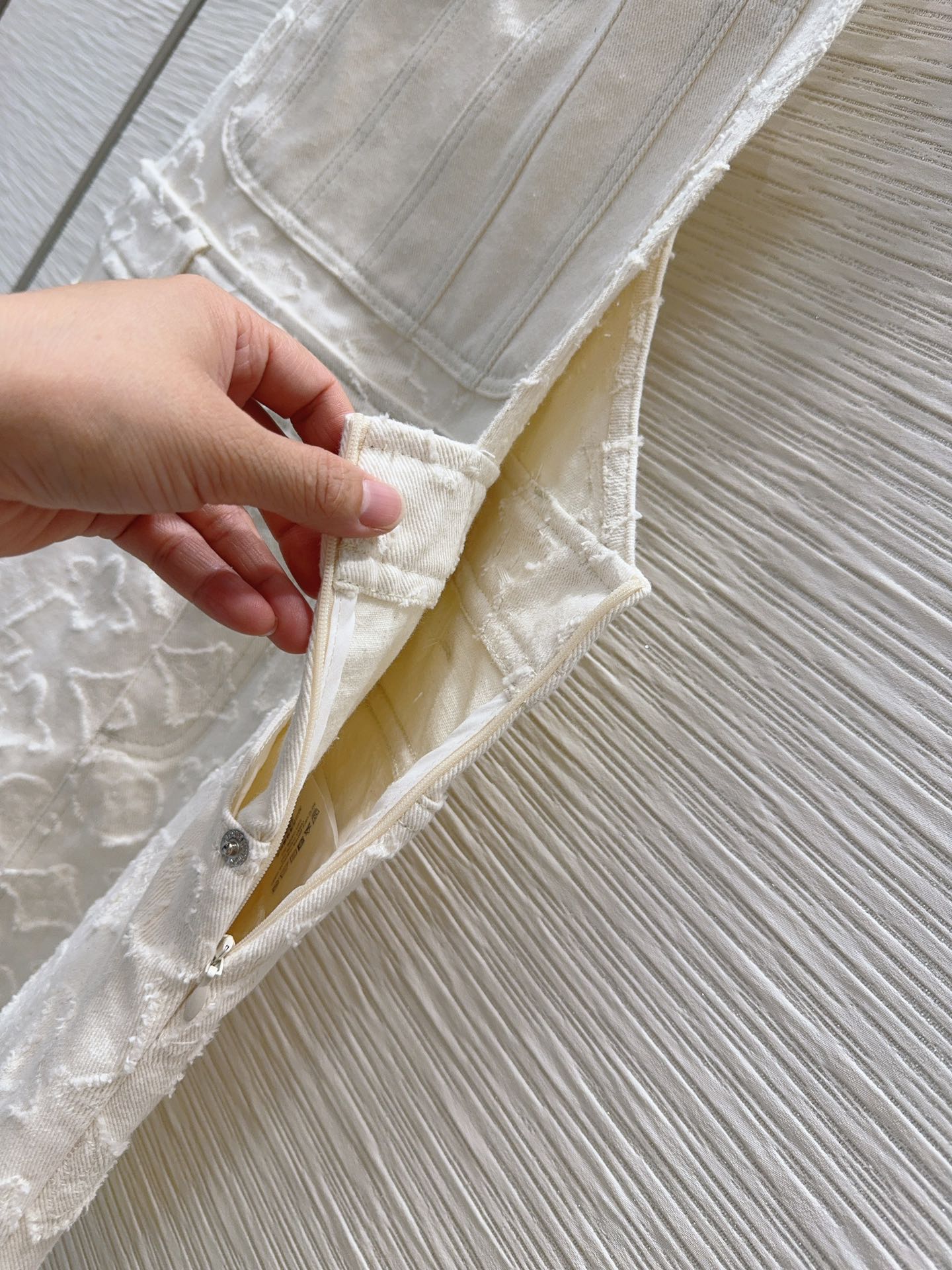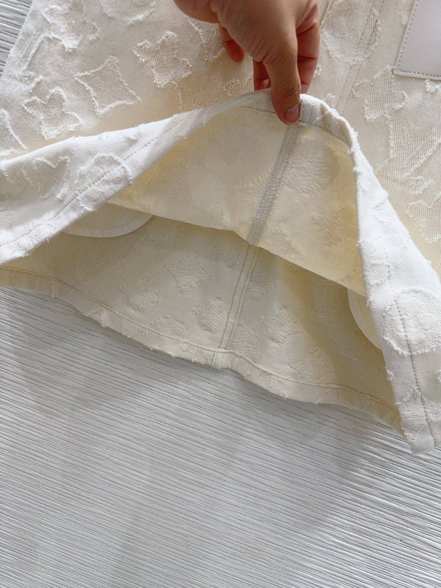 Limited series milkshake color raw edge denim full series Monogram jacquard fashionable low-key temperament and luxury high-end! The style is versatile and suitable for everyone, original custom jacquard fabric, full set of custom button accessories. Fine details. Must buy! Highly recommended. One color three sizes SML