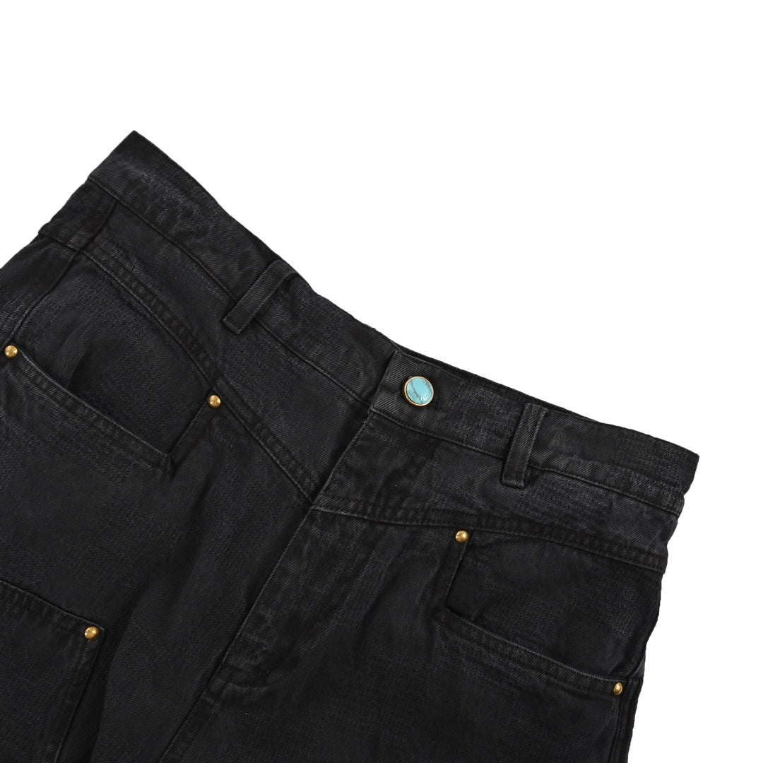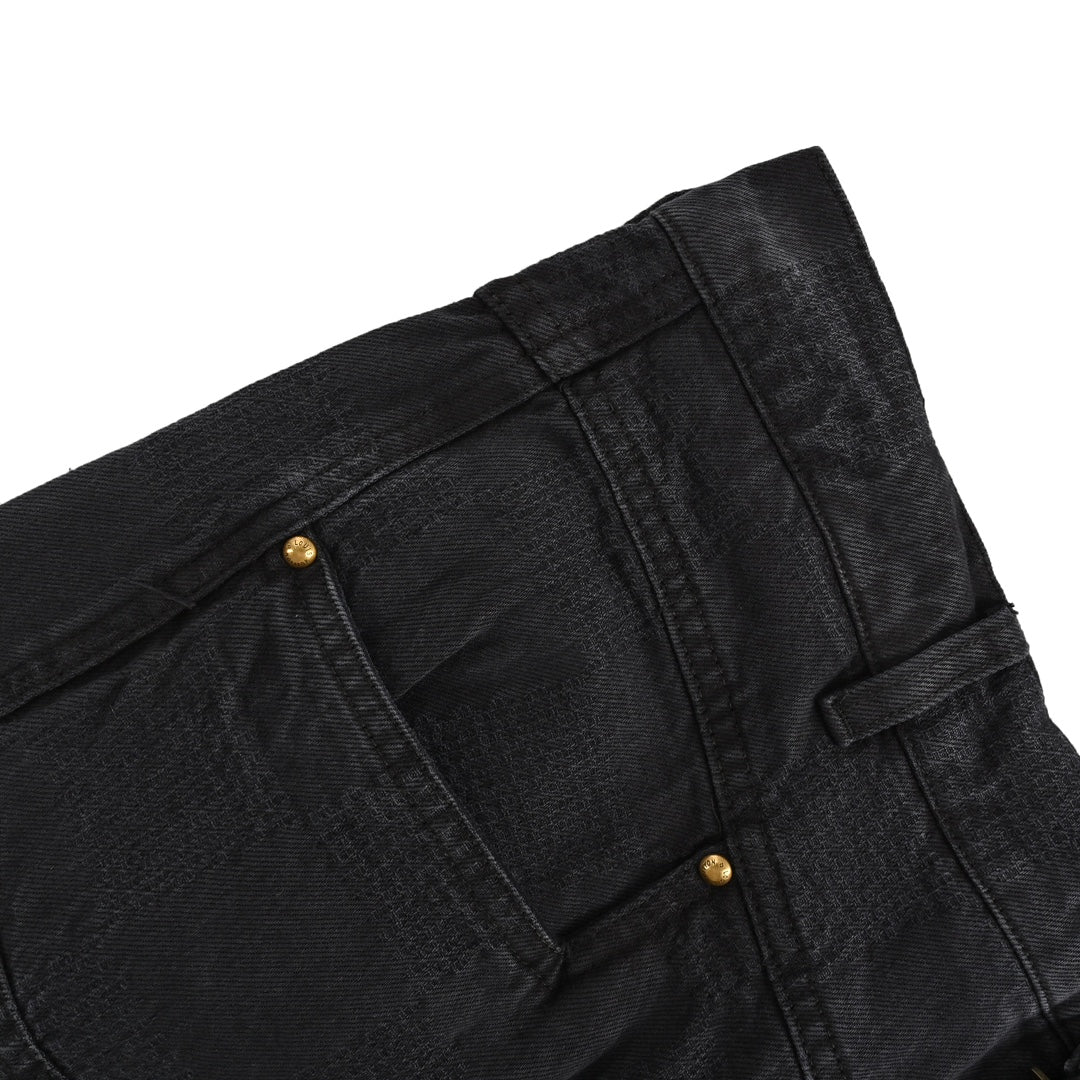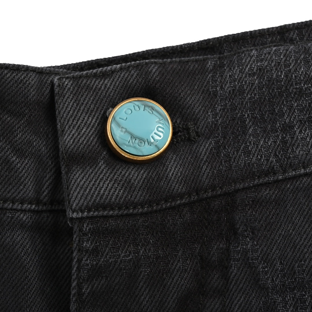The new denim trousers are decorated with the Damoflage pattern from the show, featuring a patchwork of aged patterns and washed effects. This ready-to-wear piece is adorned with the 1.Vuitton logo and a denim jacket for a casual, yet classy look! Unisex!