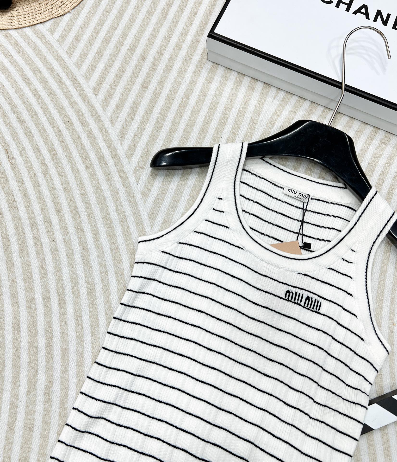 New striped letter jacquard knitted vest! Super beautiful vacation series💗💗The upper body is cool and slimming! The thin knitted material is very breathable and not stuffy at all. It has good elasticity and has a perfect paper man effect!