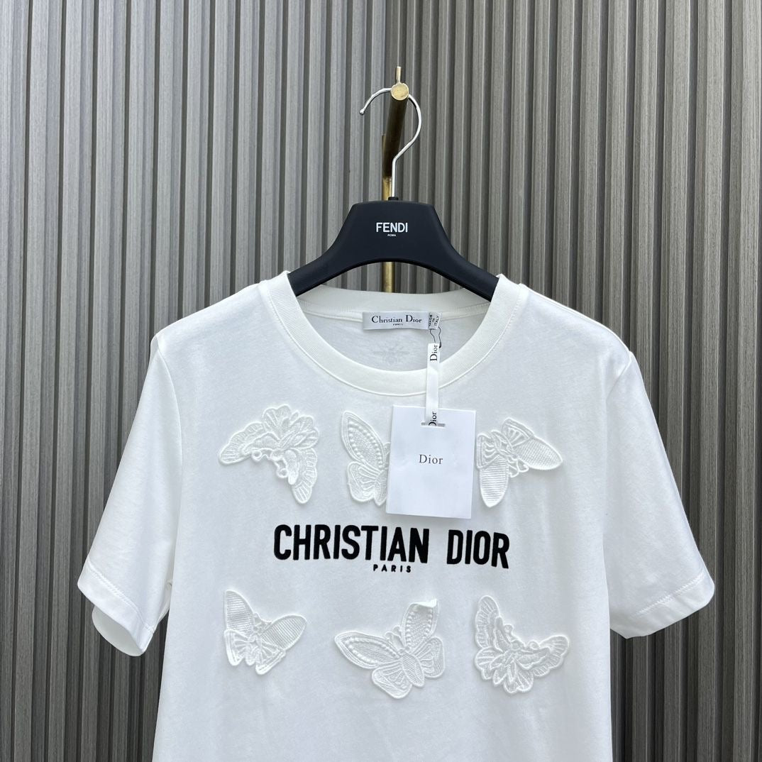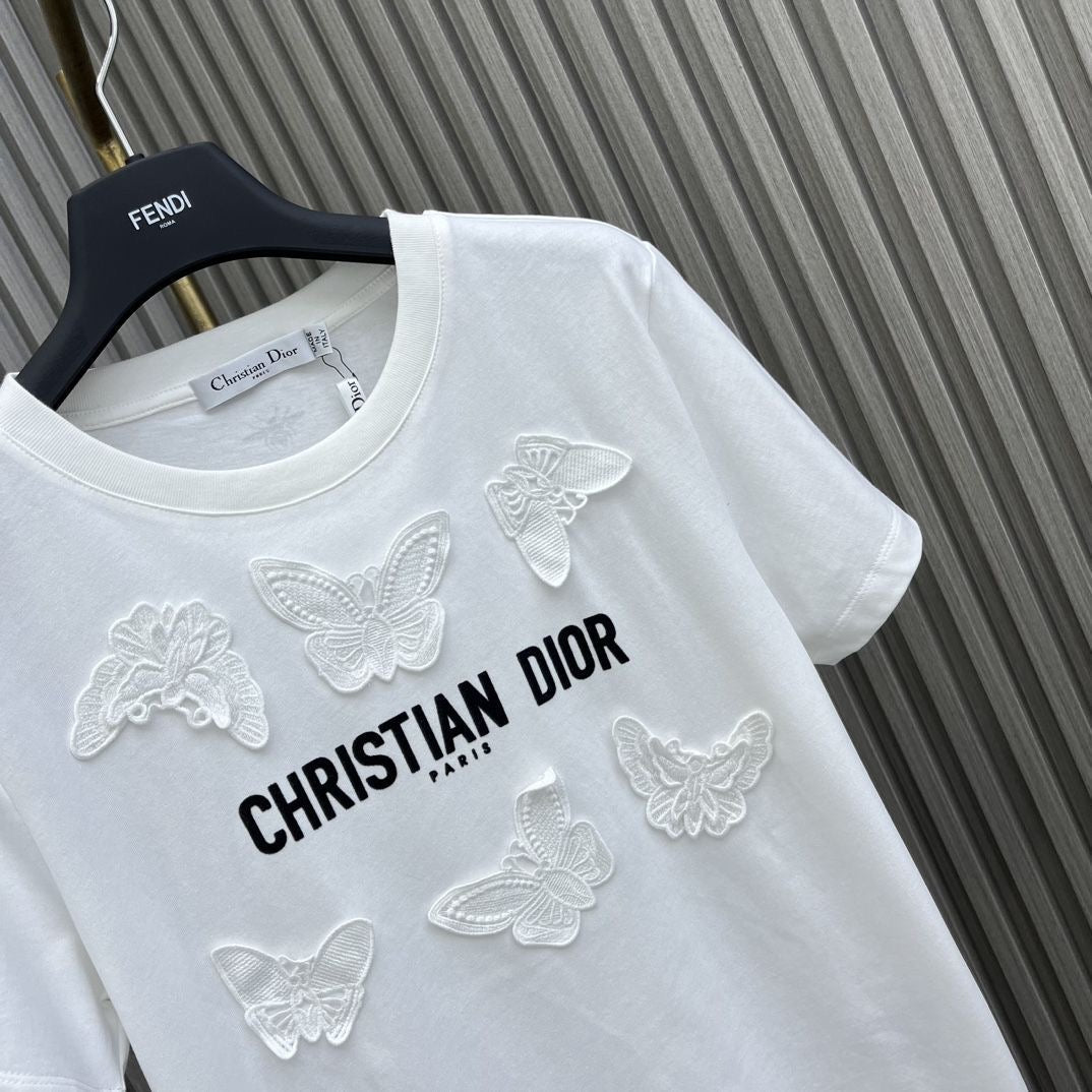 Three-dimensional butterfly embroidered short sleeves are a uniquely designed and fashionable summer clothing. It uses exquisite embroidery technology and cleverly integrates the three-dimensional butterfly pattern into the short-sleeved design, showing an elegant and romantic atmosphere. At the same time, the short-sleeved fabric is soft and comfortable, breathable and cool to wear, making it very suitable for summer wear. Whether paired with a skirt or jeans, you can easily show off your personal fashion sense and personality.