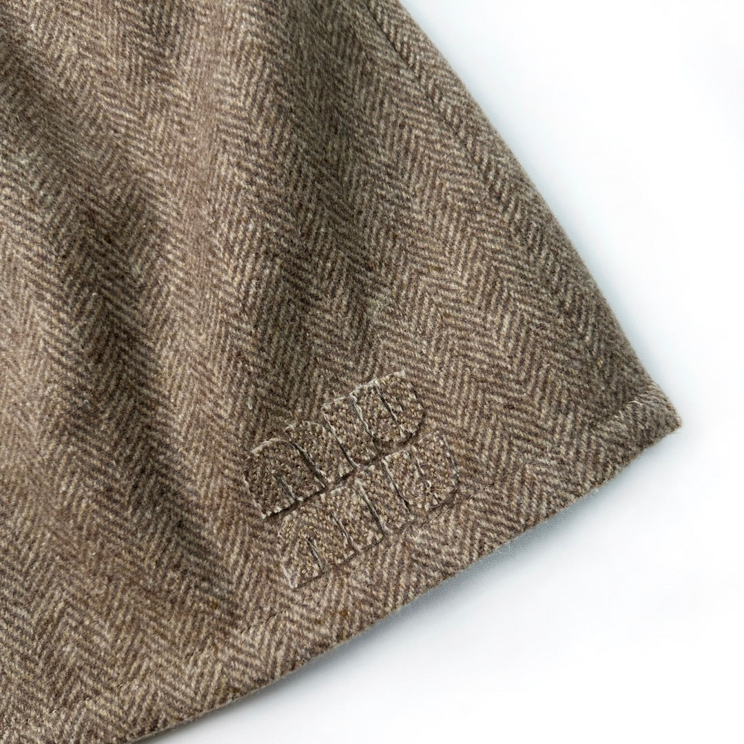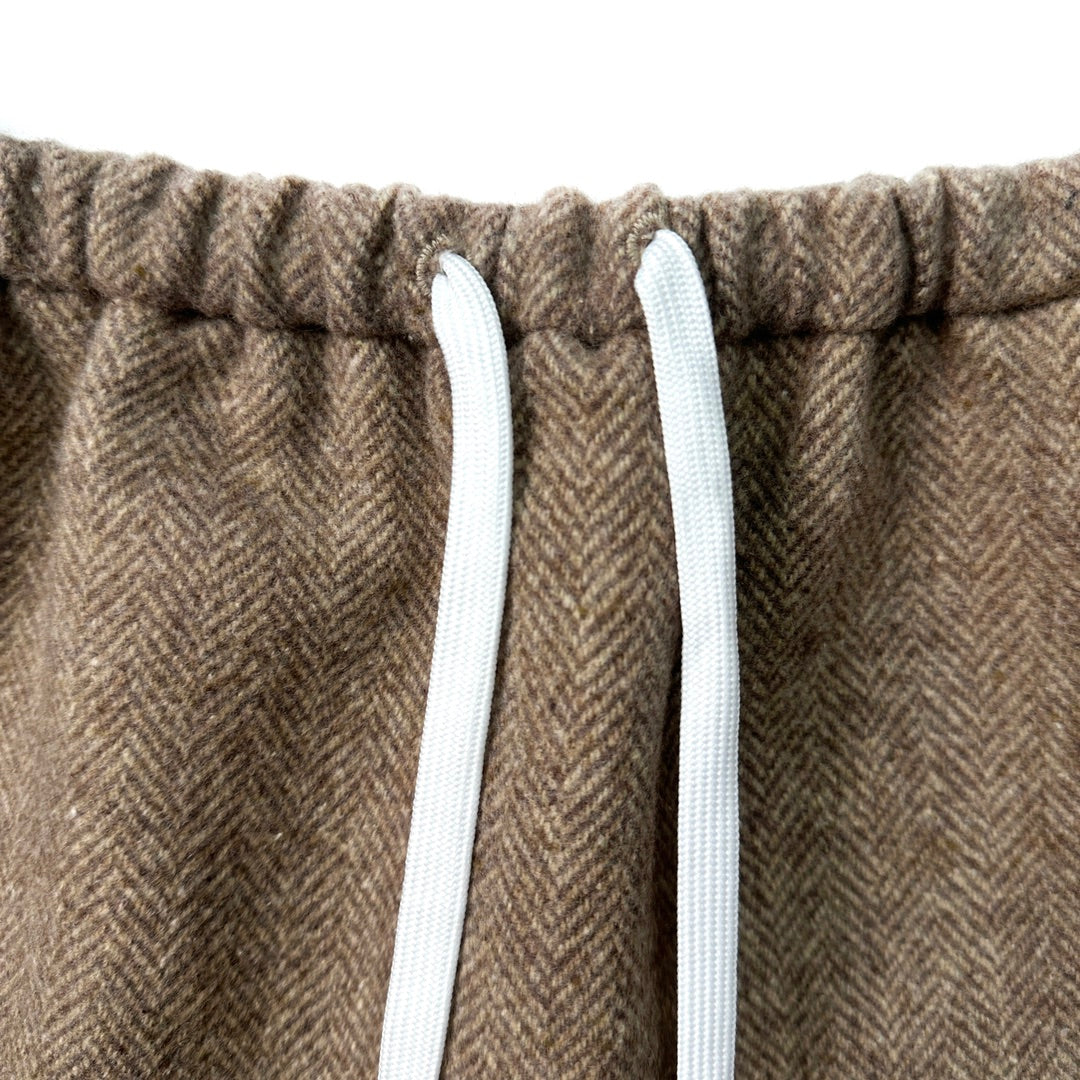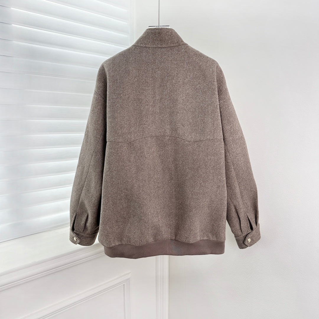 Maillard outfit, oversized jacket with classic herringbone pattern, large flap pockets, embroidered logo as the finishing touch, the same skirt also echoes the jacket logo embroidery, drawstring pocket design, a complete set!