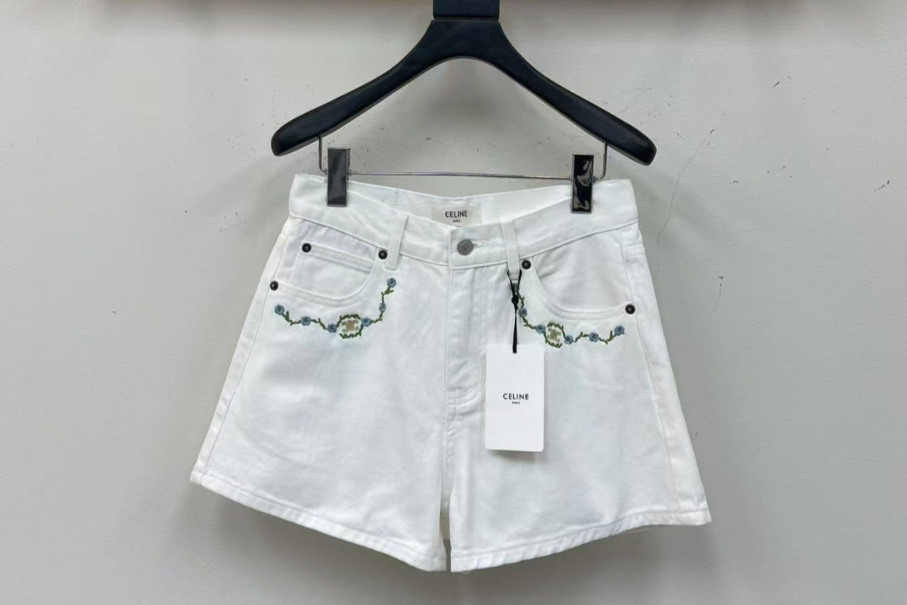 White denim shorts with embroidered letters